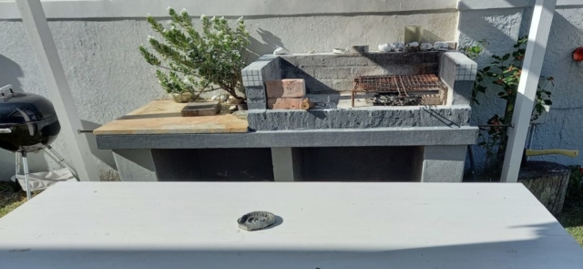 - Built in wood barbeque with dining area at the pool side