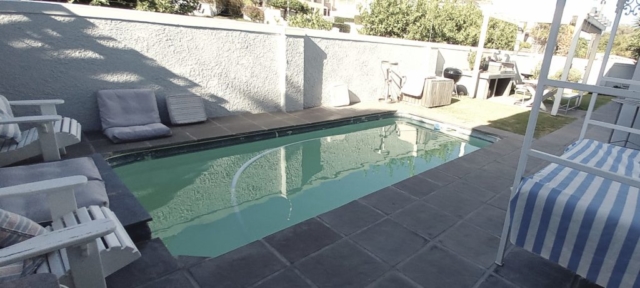 - Pool with day bed and easy chairs